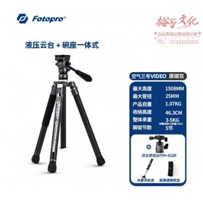 富图宝 Fotopro 空气三号VIDEO 42QR 轻便碳纤维摄影摄像球形液压双云台自由切换微单相机三脚架 原碳灰SKU:yzwhyp848216
