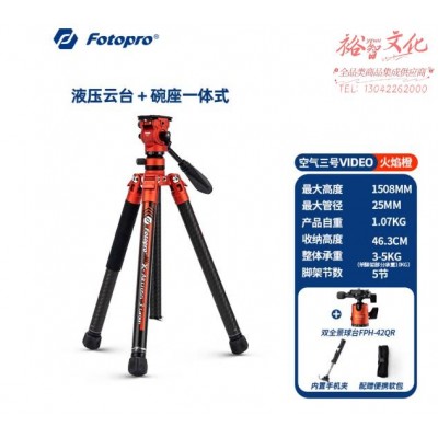 富图宝 Fotopro 空气三号VIDEO 42QR 轻便碳纤维摄影摄像球形液压双云台自由切换微单相机三脚架 火焰橙SKU:yzwhyp848217