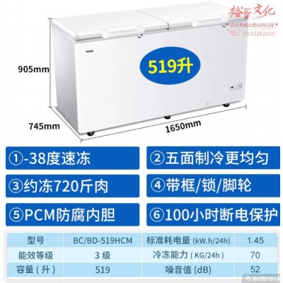 海尔(Haier)BC/BD-519HCM 冰柜商用大容量519升 冷藏冷冻单温转换卧式冷柜 顶开门商超海鲜冻货雪柜冰箱SKU:yzwhyp848594