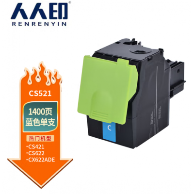 人人印CS521粉盒蓝色适用利盟/LexmarkCS421/CS521/CS622/CX421/CX522/CX622