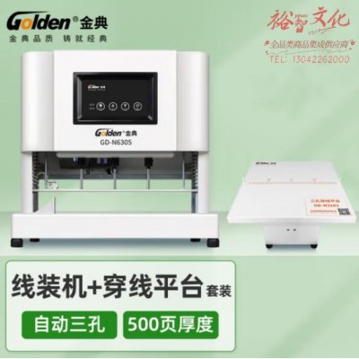 金典(GOLDEN)GD-N6305三孔打孔机 自动档案装订机 自动线装机 卷宗打孔机 (带穿线台)SKU:yzwhyp848971
