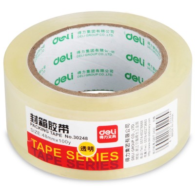 得力/deli 30248 超透封箱胶带 48mm*100y 单卷装 透明 单位:卷SKU:YZB101866