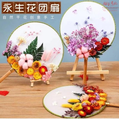星恒梦永生花团扇diy干花材料包扇子礼物母亲节团建活动花艺课手工活动 干花团扇1套SKU:YZB101871