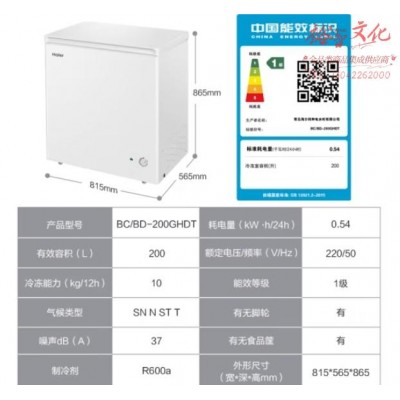 海尔(Haier)200升低霜小冰柜家用商用冷藏柜冷冻柜两用冰柜小型租房用小冰箱小型冷柜BC/BD-200GHDTSKU:yzwhyp850193
