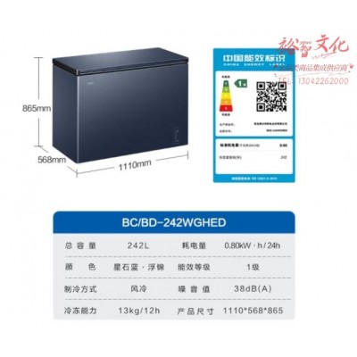 海尔(Haier)242升风冷无霜冰柜家用商用一级能效省电保鲜全冷冻卧式冷柜-38°深冷BC/BD-242WGHEDSKU:yzwhyp850246