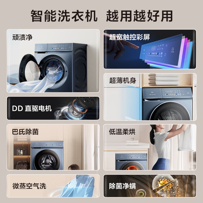 TCL 10KG直驱变频滚筒全自动洗衣机 洗烘一体机T9 除菌除螨 洗净比1.1 超薄嵌入回南天必备 G100T9-HDSKU:yzwhyp850324