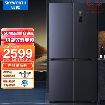 创维502升十字对开门冰箱风冷无霜一级能效电冰箱 超薄大容量家用变频四门冰箱BCD-502WXPSNSKU:yzwhyp850377
