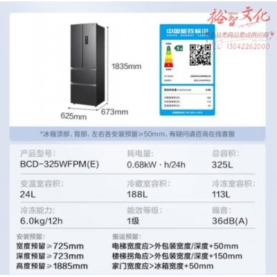 美的(Midea)325升一级能效双变频法式多门四开门小型家用电冰箱超薄风冷无霜节能低噪BCD-325WFPM(E)SKU:yzwhyp850455