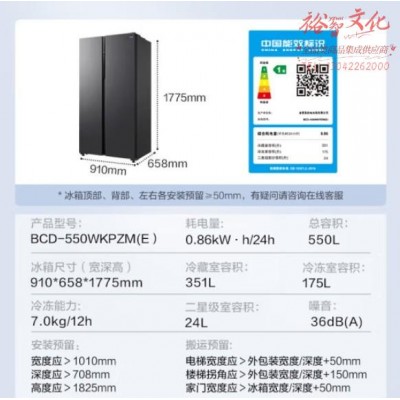 美的(Midea)550升一级能效双变频对开门双开门家用智能电冰箱节能无霜净味超薄嵌入BCD-550WKPZM(E)大容量SKU:yzwhyp850460