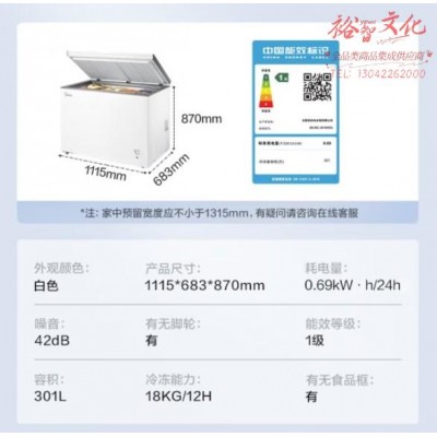 美的(Midea)301升 商用家用卧式大冷冻囤货冰柜 大容量冷藏冷冻转换冷柜 卧式冰箱 BD/BC-301KM(E)SKU:yzwhyp850463