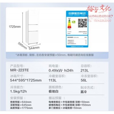美的(Midea)213升精致三门三温区白色租房家用小冰箱三开门大容量中门软冷冻节能省电低音MR-223TESKU:yzwhyp850477