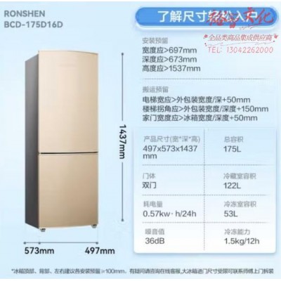 容声(Ronshen)175升双门两门小冰箱家用小型节能租房宿舍实用小巧不占地双温区保鲜BCD-175D16D自动低温补偿SKU:yzwhyp850500