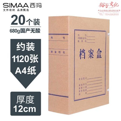西玛(SIMAA) 20个A4无酸680g牛皮纸档案盒12cm 定制文件盒/资料盒/办公用品SKU:yzwhyp851172