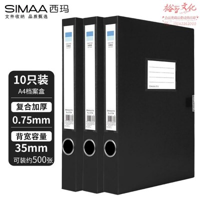 西玛(SIMAA)10只 35mmA4文件盒 加厚牢固耐用粘扣塑料档案盒 考试收纳资料盒 深邃黑 厂家直发SKU:yzwhyp851175