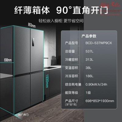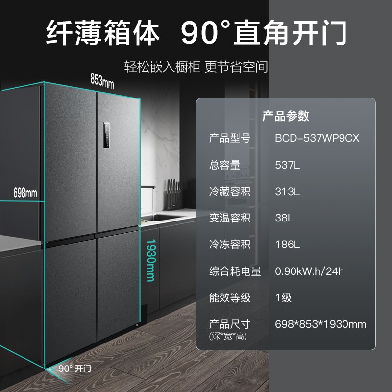 美菱冰箱(MELING)537升十字对开门家用冰箱四开门多门节能一级变频风冷无霜大容量冰箱 BCD-537WP9CX 干湿分储SKU:yzwhyp851432