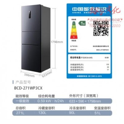 美菱(MeiLing)【离子净】271升三门家用冰箱三开门变频一级风冷无霜低噪租房宿舍小冰箱BCD-271WP3CXSKU:yzwhyp851439