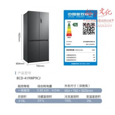 美菱(MeiLing)离子净419升一级能效双变频十字对开四开门超薄可嵌入式冰箱家用风冷无霜BCD-419WP9CJ大容量SKU:yzwhyp851484