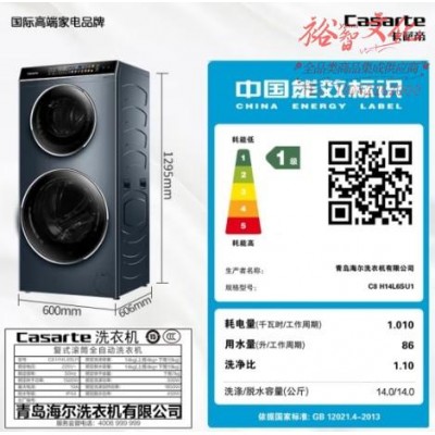 卡萨帝(Casarte)双子云裳滚筒分区洗衣机14KG 直驱变频 双子星平衡科技 玉黛青 洗烘一体H14L6SU1SKU:yzwhyp851702