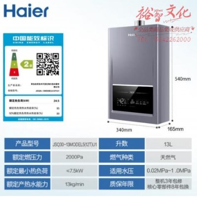 首页 > 电气设备 > 烹调电器 > 海尔(Haier)13升燃气热水器天然气 无级变频水伺服恒温 静音降噪 智慧节能 低水压启动JSQ25-13MODEL5(12T)U1SKU:yzwhyp852100