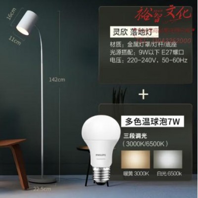 飞利浦(PHILIPS) led落地灯沙发立式灯床头灯客厅钢琴卧室书房灯护眼灯阅读学习灯 灵欣含7W白光三段调光LED光源SKU:yzwhyp852296