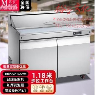 慕雪风冷撒料工作台沙拉柜赛百味冷藏水果捞展示柜商用开槽小菜冰箱操作台披萨撒料台沙拉台工作台 1188*750*1075双门沙拉台SKU:yzwhyp852315