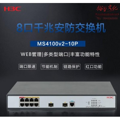 新华三(H3C)安防监控8口千兆电 2千兆光纤口二层网管企业级网络交换机 优先高速/链路聚合 MS4100V2-10PSKU:yzwhyp852402