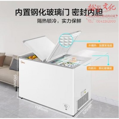 美的(Midea)271升 商用家用囤货冰柜 大容量冷藏冷冻双箱双温冷柜 可移动蝶形门卧式冰箱BCD-271VMQSKU:yzwhyp852651