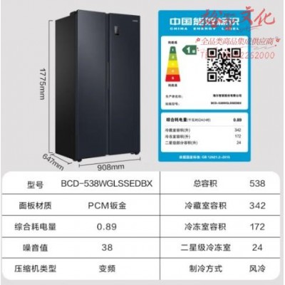 Leader 海尔智家出品538升超大容量风冷无霜一级能效对开门双开门冰箱家用超薄电冰箱BCD-538WGLSSEDBXSKU:yzwhyp852706