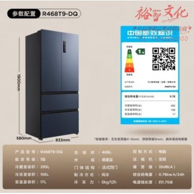 TCL 468升T9法式四门58cm超薄嵌入式冰箱杀菌除味双循环一级能效风冷无霜家用电冰箱R468T9-DQSKU:yzwhyp852740
