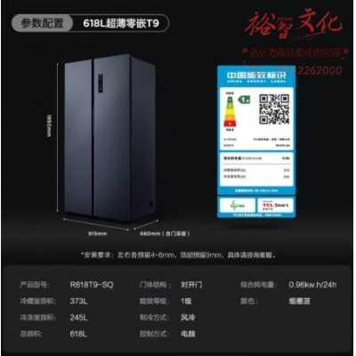 TCL 超薄零嵌系列618L双开对开门冰箱超薄嵌入式大容量家用冰箱一级变频底部散热双循环R618T9-SQSKU:yzwhyp852763