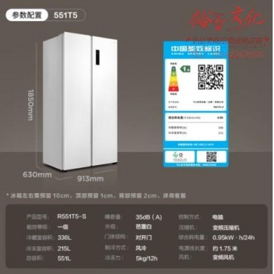 TCL 63CM超薄嵌入551升大容量对开双开门两门冰箱除菌净味一级能效风冷无霜家用电冰箱R551T5-SSKU:yzwhyp852799