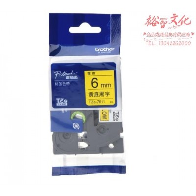 兄弟(brother)TZe-Z611 6mm黄底黑字标签色带 TZe-611升级版SKU:yzwhyp852929