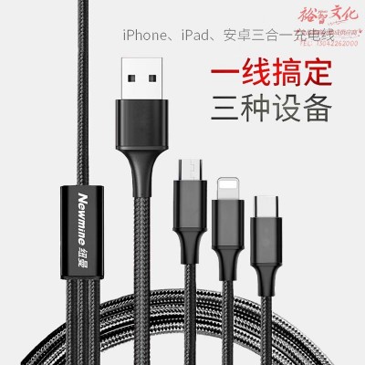 纽曼苹果/安卓/Type-C手机三合一USB-C快充数据线一拖三充电线 黑色SKU:YZB101903