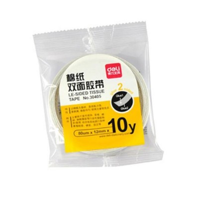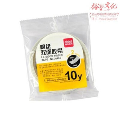 得力 棉纸双面胶带12mm*10y*80um(白) 1卷 50卷起售-30405SKU:YZB101938