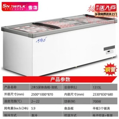 雪花(SNOWFLK)冰柜商用展示柜冷藏柜冷藏冷冻展示柜大容量冷柜玻璃保鲜卧式冰柜 2米5双机岛柜1315LSKU:yzwhyp853213