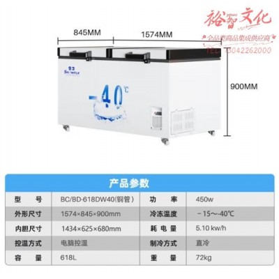 雪花 SNOWFLK 冰柜 商用冷藏冷冻保鲜柜 -40°超低温冰柜卧式商用冷柜 HM雪花618DW40铜 -40度低温柜SKU:yzwhyp853224