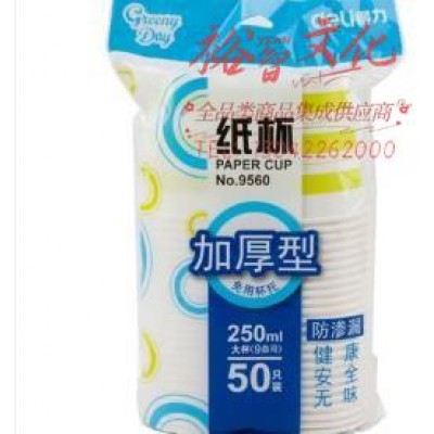 得力(deli)250ml(9盎司)加厚一次性水杯/纸杯 50只装9560SKU:YZB101968