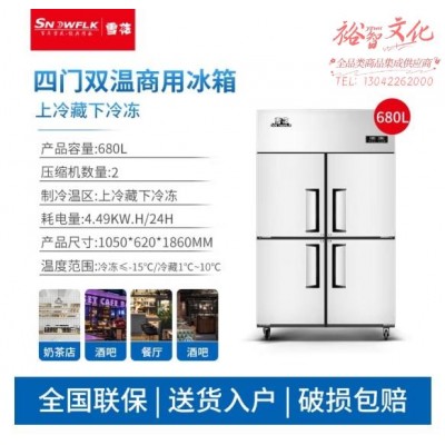 雪花(SNOWFLK)商用四门冰箱冰柜厨房立式双温冷藏冷冻饭店酒店不锈钢冷柜冷冻冰柜 双压缩机BCD-680SKU:yzwhyp853320