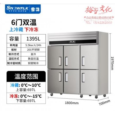 雪花(SNOWFLK)六门冰箱商用冰柜立式不锈钢厨房冰箱冷柜双温冷藏冷冻大容量 标准款-1395/六门上冷藏SKU:yzwhyp853329