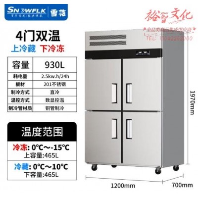雪花(SNOWFLK)四门冰箱商用冰柜立式不锈钢厨房冰箱冷柜双温冷藏冷冻大容量 工程款-930/四门上冷藏SKU:yzwhyp853341