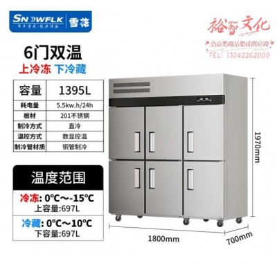 雪花(SNOWFLK)六门冰箱商用冰柜立式不锈钢厨房冰箱冷柜双温冷藏冷冻大容量 工程款-1395/六门上冷冻SKU:yzwhyp853343