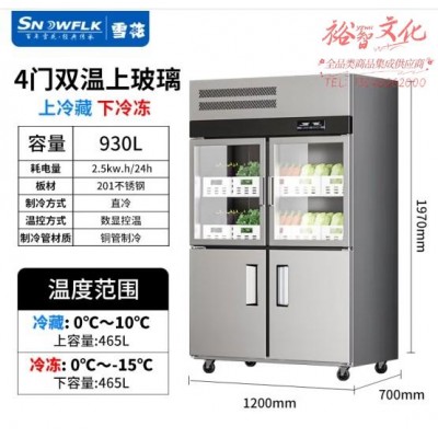 雪花(SNOWFLK)四门冰箱商用冰柜立式厨房冰箱玻璃门双温冷藏冷冻不锈钢冷柜 工程款-930/四门上玻璃SKU:yzwhyp853346