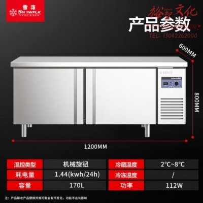 雪花(SNOWFLK)冷藏工作台商用冰柜卧式保鲜平冷操作台奶茶店水吧台厨房不锈钢冰箱HC-1200-JD(600)SKU:yzwhyp853378
