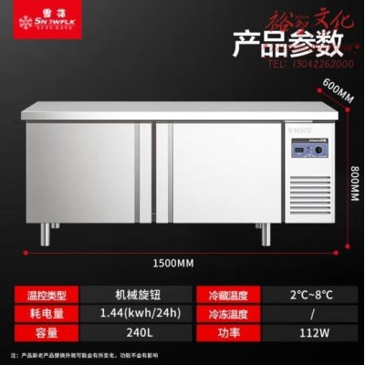 雪花(SNOWFLK)冷藏工作台商用冰柜卧式保鲜平冷操作台奶茶店水吧台厨房不锈钢冰箱HC-1500-JD(600)SKU:yzwhyp853380