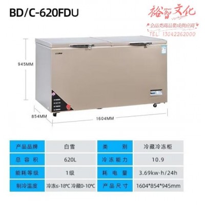 白雪(Baixue)冰柜商用620升大容量冷柜 冷藏冷冻单温转换卧式铜管雪柜 顶开门保鲜冻肉冰箱BD/C-620FDUSKU:yzwhyp853544