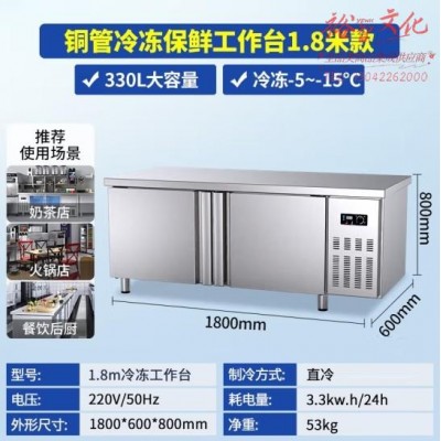 东贝(Donper)冷藏保鲜工作台商用冷冻操作台冰柜平冷水吧台不锈钢厨房奶茶店工作台1.8米冷冻HL-SDT330SKU:yzwhyp853653
