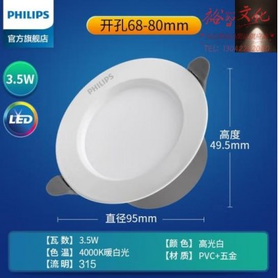 飞利浦(PHILIPS)筒灯嵌入式吊顶用客厅射灯孔灯牛眼天花灯3.5瓦暖白光开孔6.8-8cmSKU:yzwhyp854065