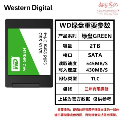 西部数据(WD) Green SSD固态硬盘 SATA3.0接口 绿盘 笔记本台式机 家用普及版 SSD固态硬盘 2TBSKU:yzwhyp854144