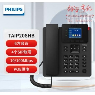 首页 > 通信设备 > 普通电话机(不包含移动电话) > 飞利浦(PHILIPS)TAIP208HB 百兆网口 4SIP账号 IP电话机座机 VOIP网络电话 呼叫中心话务电话可壁挂 PoE供电SKU:yzwhyp854294