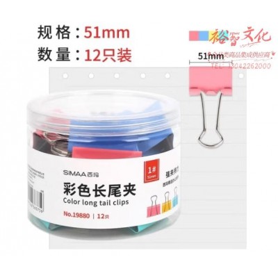 西玛(SIMAA)12只彩色长尾夹票夹51mm 燕尾夹办公用品19880SKU:yzwhyp854314